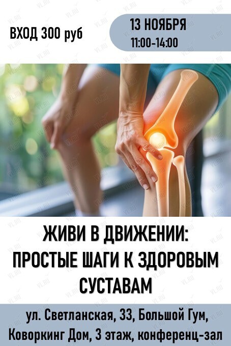 Вы зарегистрированы на событие «Медицинская конференция «Живи в движении: простые шаги к здоровым суставам»», на 13 декабря 11:00