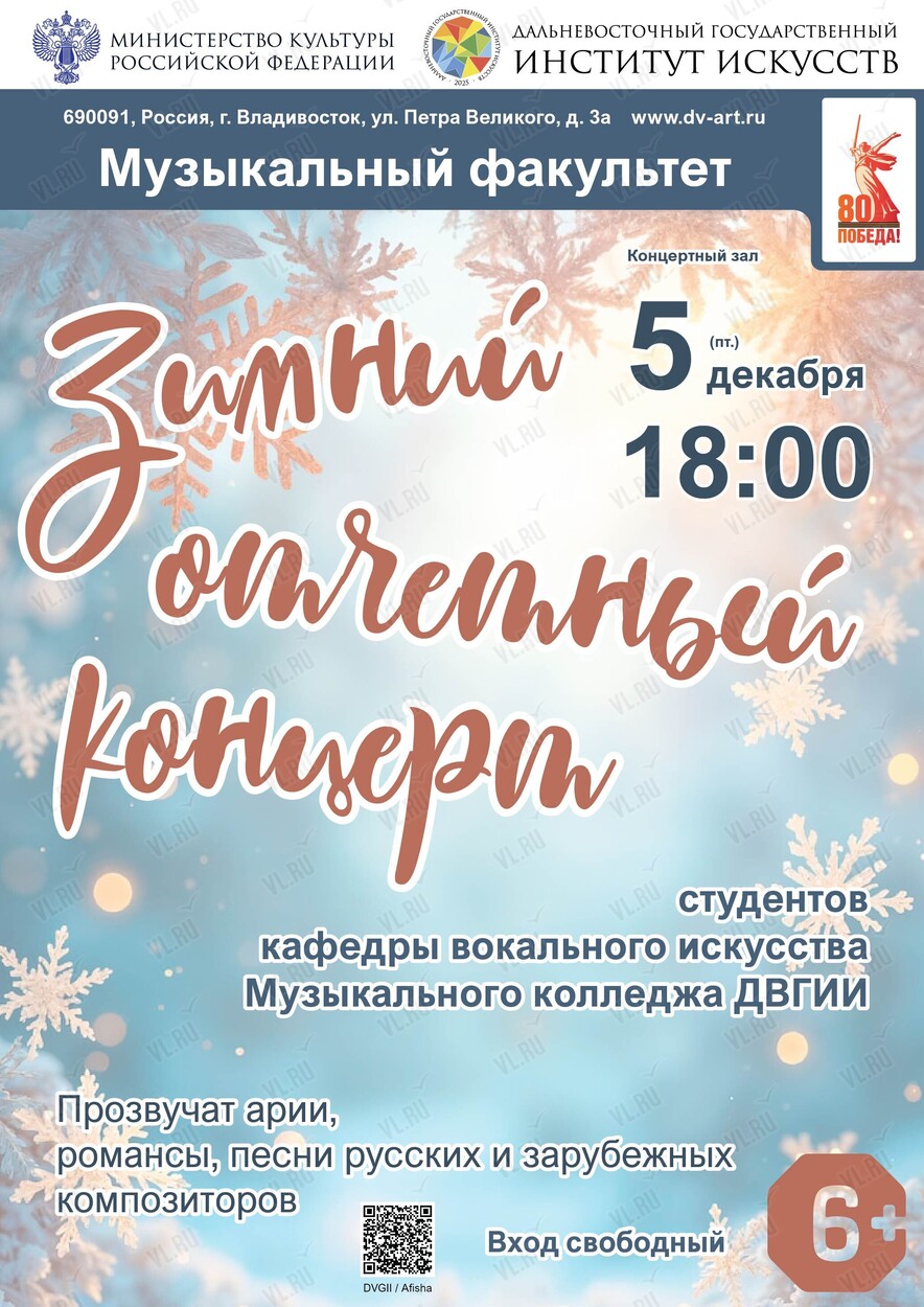 5 декабря в концертном зале Дальневосточного государственного института пройдет Зимний отчётный концерт!