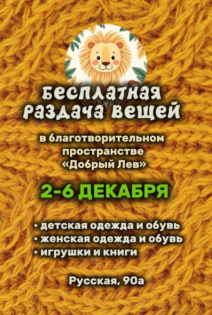 Пространство «Добрый Лев» приглашает на бесплатную раздачу вещей со 2 по 6 декабря!