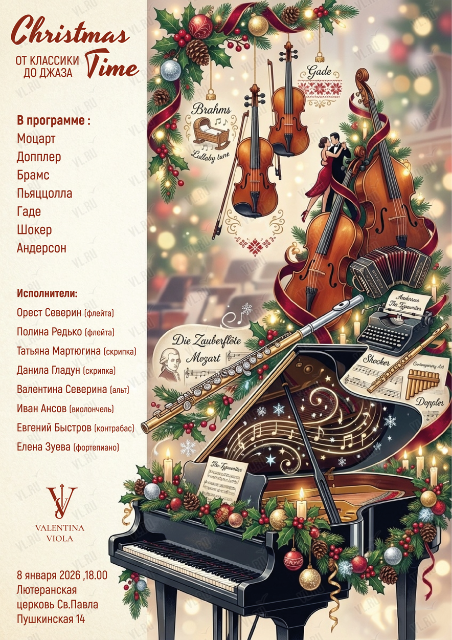 8 января на сцене Лютеранской церкви святого Павла пройдет концерт «Christmas Time. От классики до джаза»!