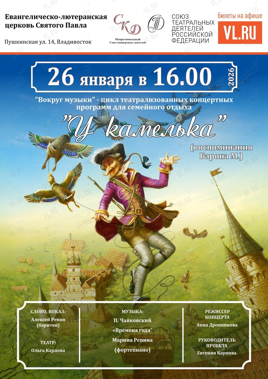 Предлагаем нашим зрителям отправиться в гости к «самому правдивому человеку на земле» Барону М., и послушать истории о его невероятных путешествиях и приключениях. Проводником его рассказов станет музыка цикла «Времена года» Петра Ильича Чайковского, которая создаст атмосферу уютного предновогоднего вечера.