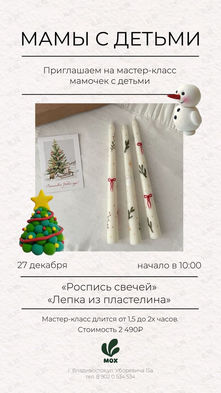 Вы зарегистрированы на событие «Мастер-класс «Роспись свечей/Лепка из воздушного пластилина» для мам и детей», на 27 декабря 10:00
