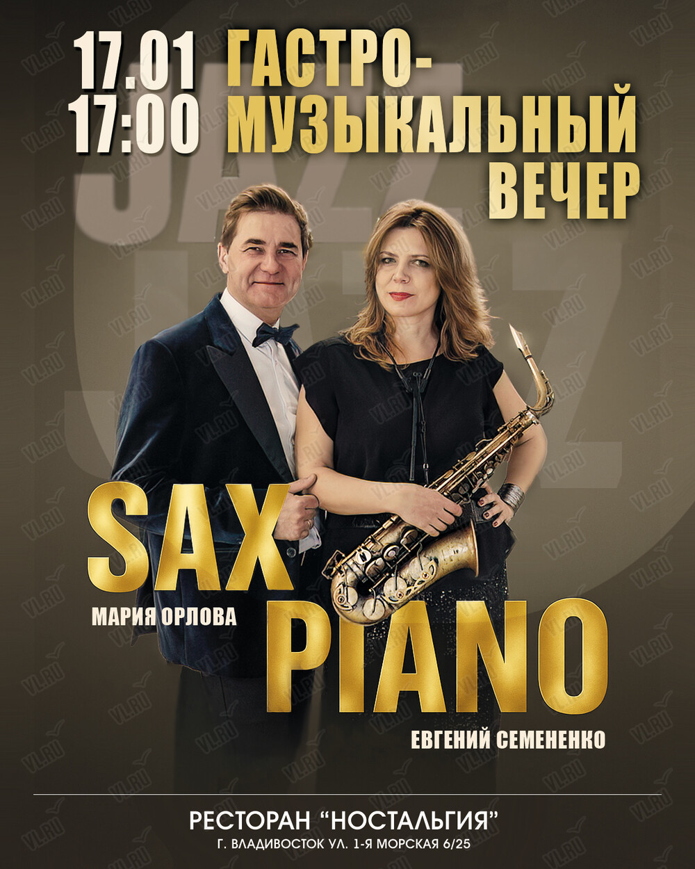 17 января в ресторане «Ностальгия» пройдет гастро‑джазовый вечер Sax & Piano!