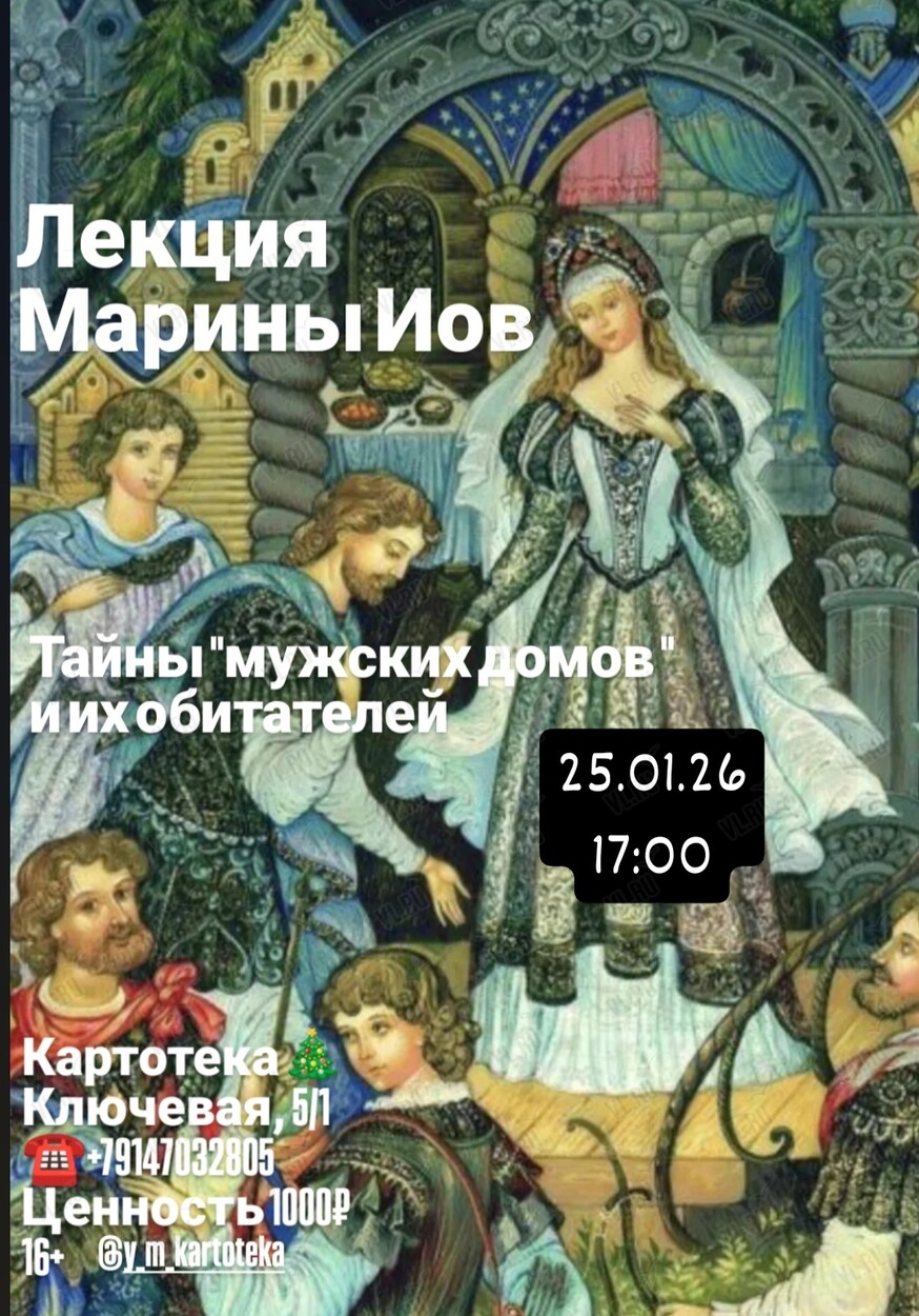 25 января в пространстве «Картотека» пройдет лекция филолога Марины Иов «Тайны "мужских домов" и их обитателей»!