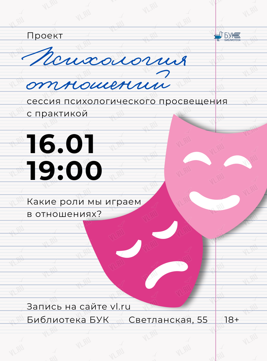 16 января в 19:00 в БУКе состоится сессия психологического просвещения проекта «Психология отношений».