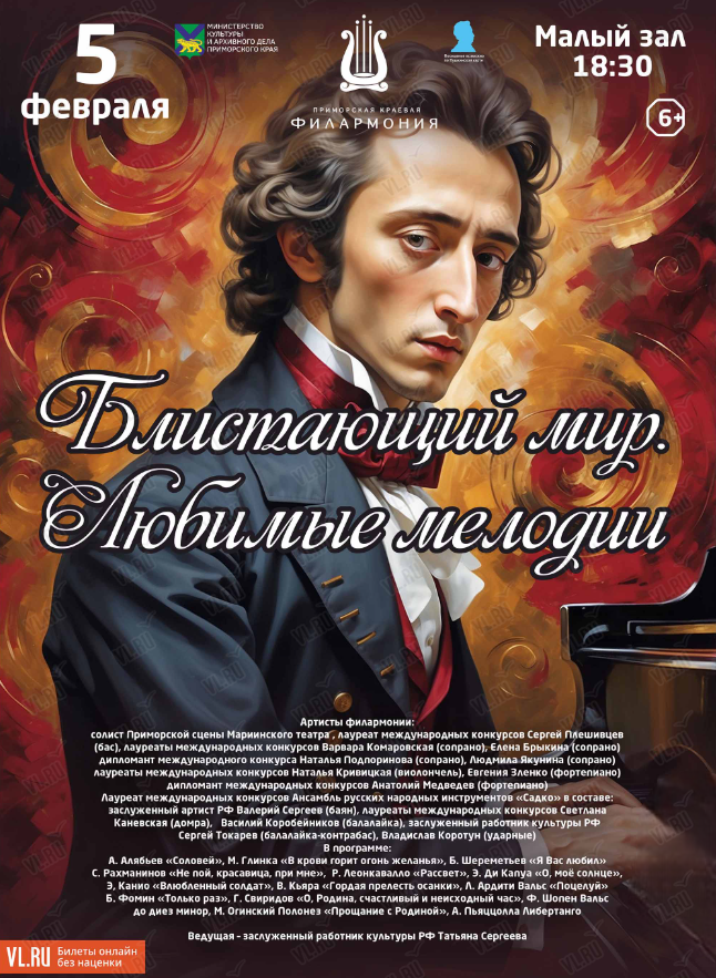 И всё это — программа концерта «Любимые мелодии», который состоится благодаря выступлению артистов Приморской краевой филармонии