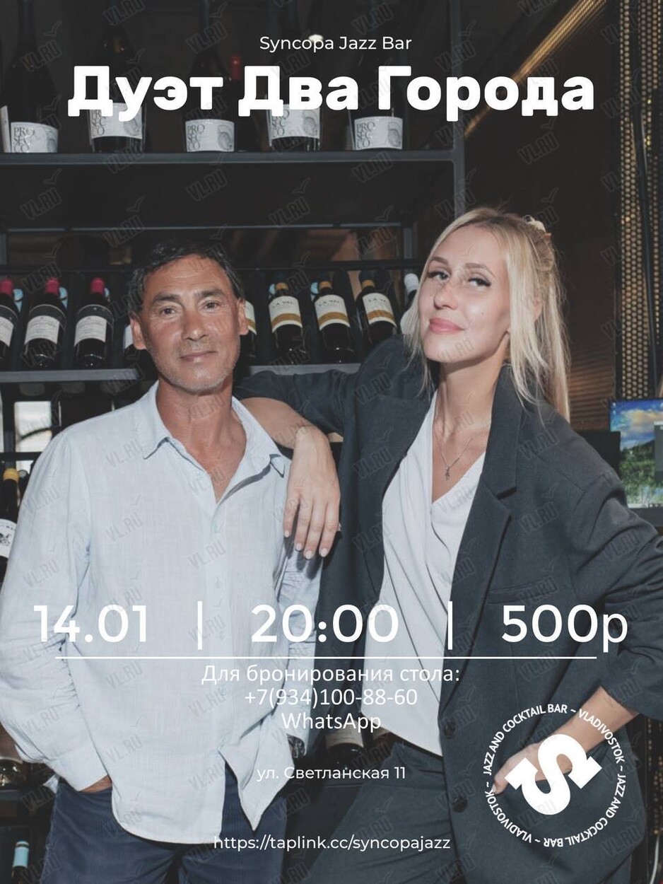 14 января на сцене джаз-бара Syncopa выступит Дуэт «Два Города»!