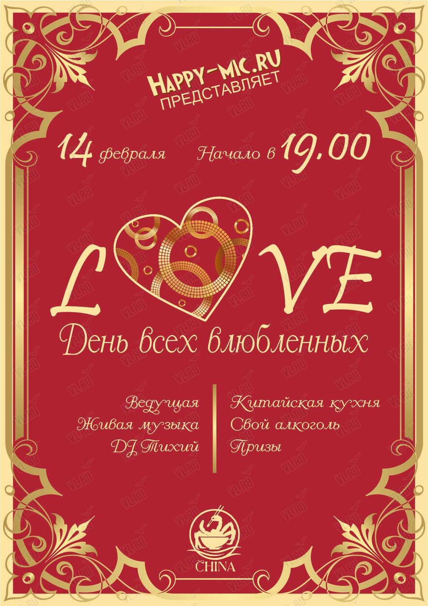 Вечеринка «День всех влюбленных» в ресторане китайской оригинальной кухни CHINA!