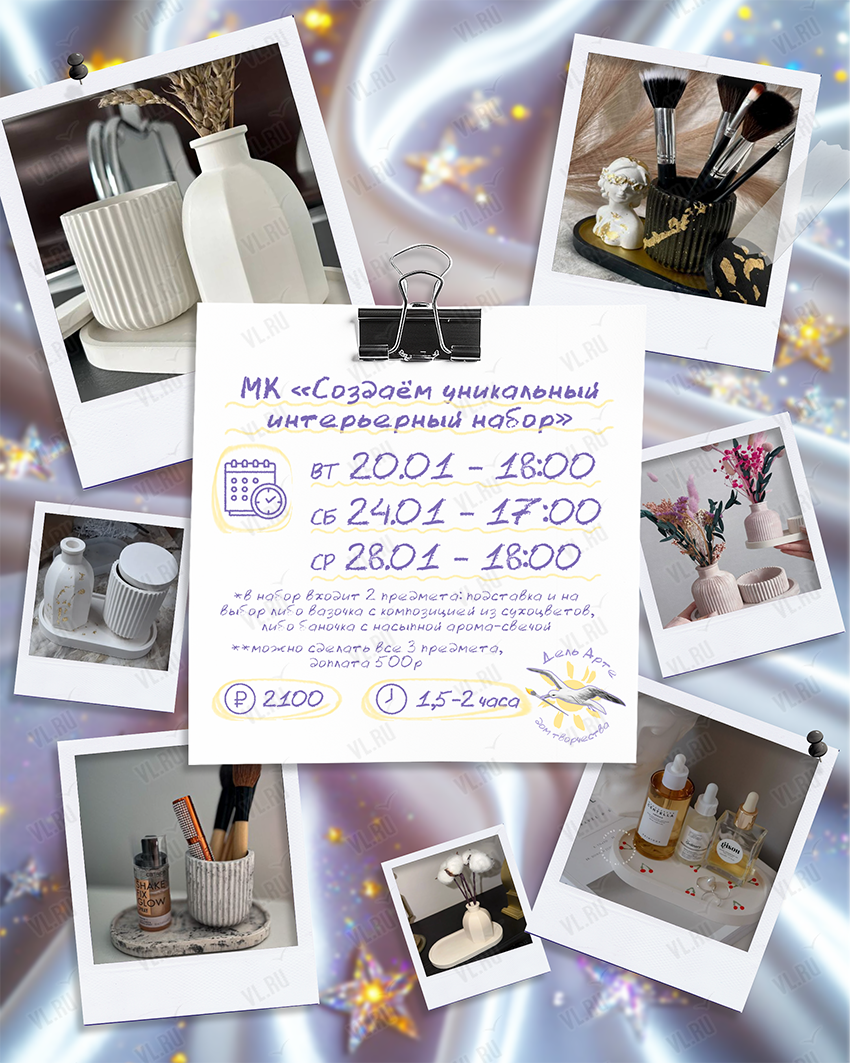 Количество мест ограничено! Успейте забронировать своё участие и превратить обычный вечер в творческий праздник. Превратите свои идеи в реальность! Записывайтесь уже сегодня — создайте свой уникальный уголок уюта!
