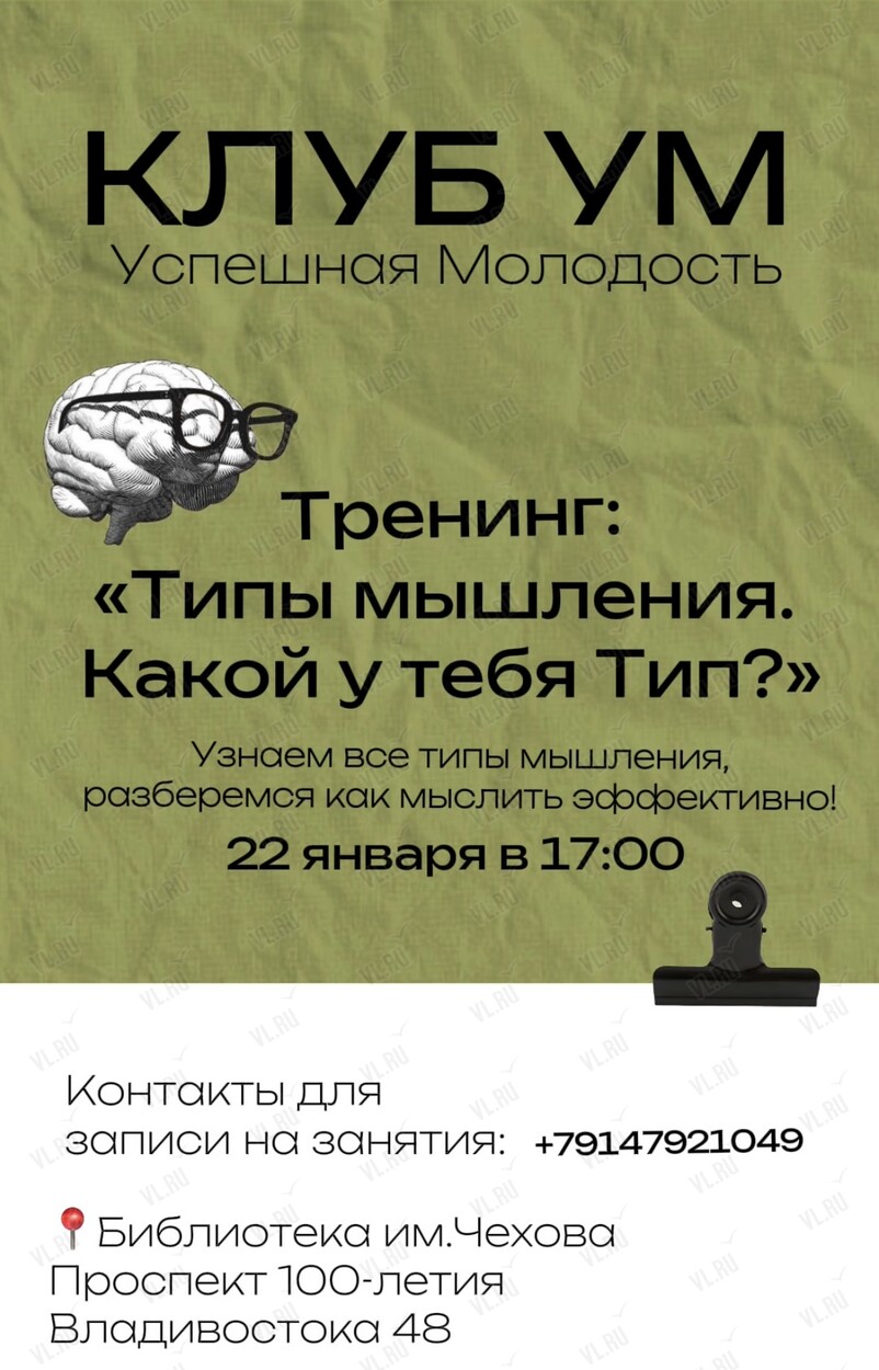 Клуб УМ приглашает ребят на тренинг «Типы мышления. Какой тип у тебя?» для подростков 14-17 лет!