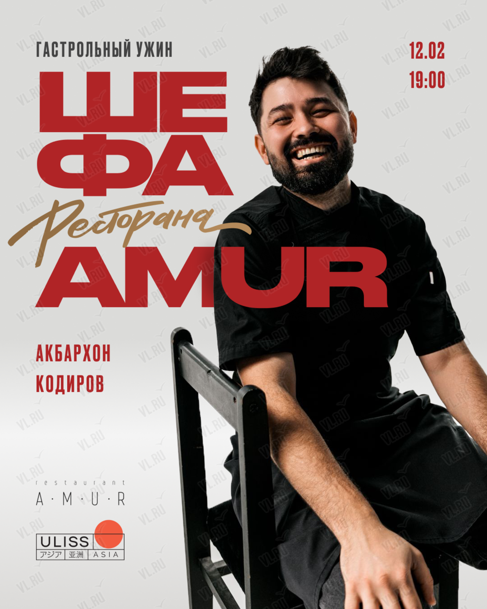 12 февраля в ресторане Uliss Asia состоится гастрольный ужин шеф-повара Акбара Кодирова, шефа ресторана «Amur» — одного из лучших ресторанов Дальнего Востока.