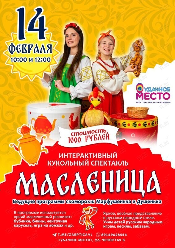Вы зарегистрированы на событие «Кукольный спектакль «Масленица» для малышей», на 14 февраля 12:00