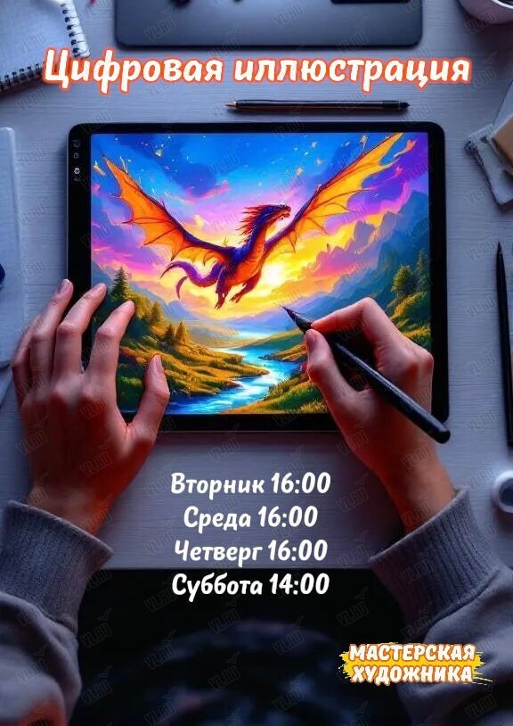 Всё это — на курсе по цифровой иллюстрации! Группы набираются на вторник, среду и четверг в 16:00, а в субботу — в 14:00