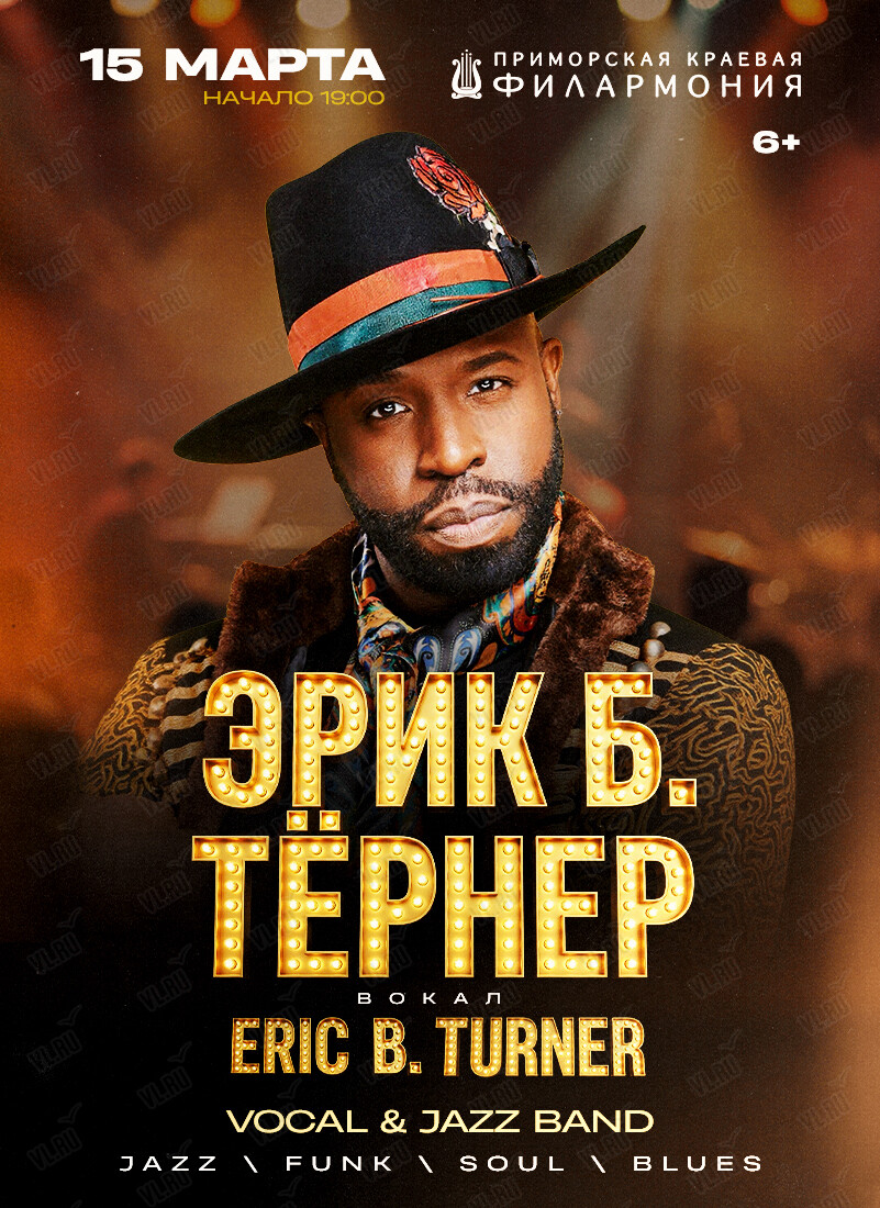 Эрик Б. Тёрнер привезёт свой уникальный блюз и джаз, полные энергии и эмоций. В этот вечер вокалист выступит со своей группой в Филармонии с большим концертом и подарит вам живую музыку, которая звучит вне времени и оставляет след в сердце.