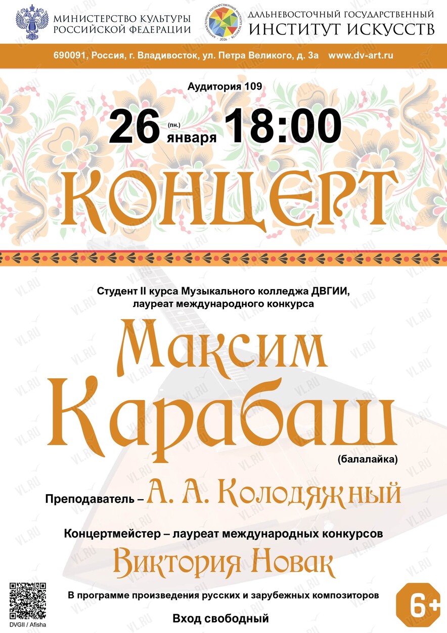 26 января в Дальневосточном государственном институте искусств пройдет концерт Максима Карабаша (балалайка)!