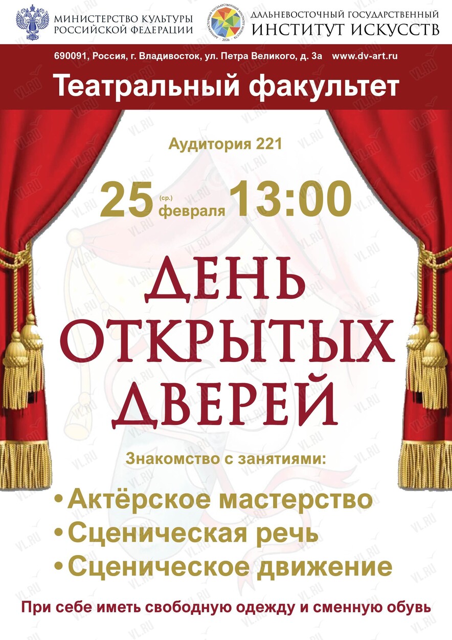 День открытых дверей на театральном факультете ДВГИИ – 25 февраля!