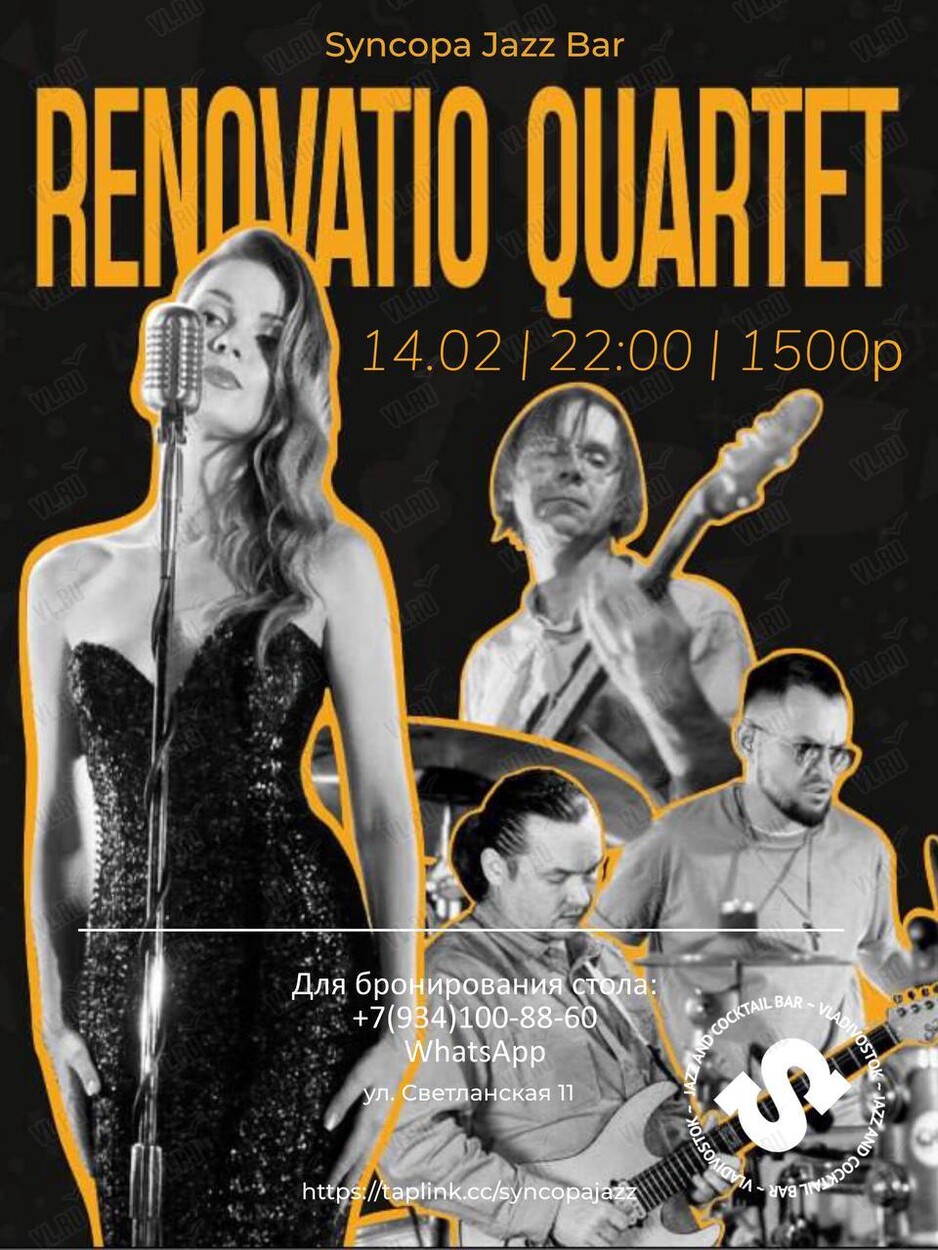 14 февраля на сцене джаз-бара Syncopa – Квартет Renovatio (Реновацио)!