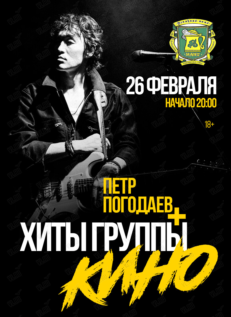26 февраля на сцене бар-ресторана «Ханс» – Пётр Погодаев + хиты группы «Кино»!
