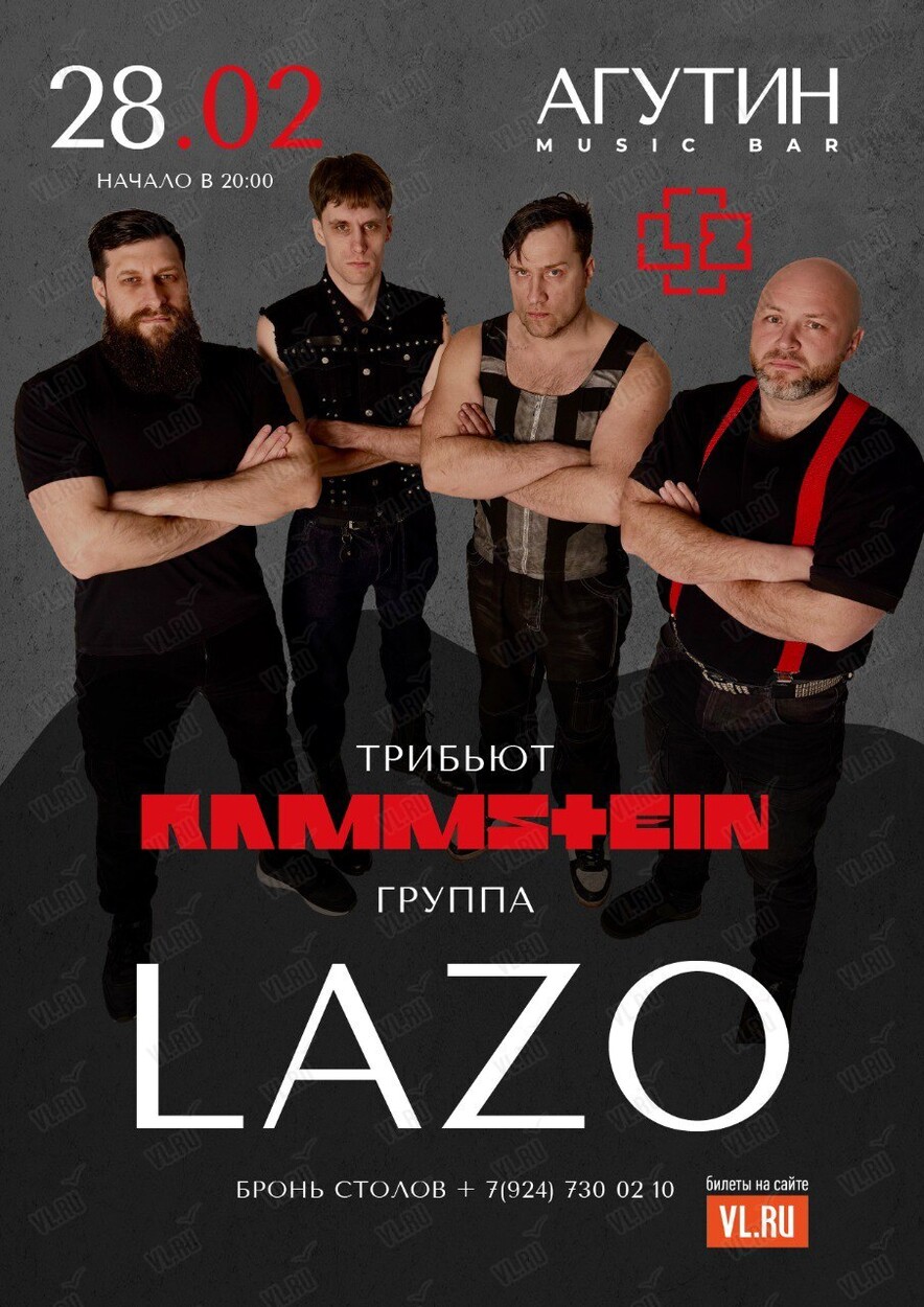 Группа Lazo - трибьют-шоу легендарных Rammstein, поражающий идентичным звучанием! Невероятное шоу, наполненное спецэффектами, под соусом мощной харизмы и артистизма, окунет в ту самую неповторимую атмосферу немецкого рока!