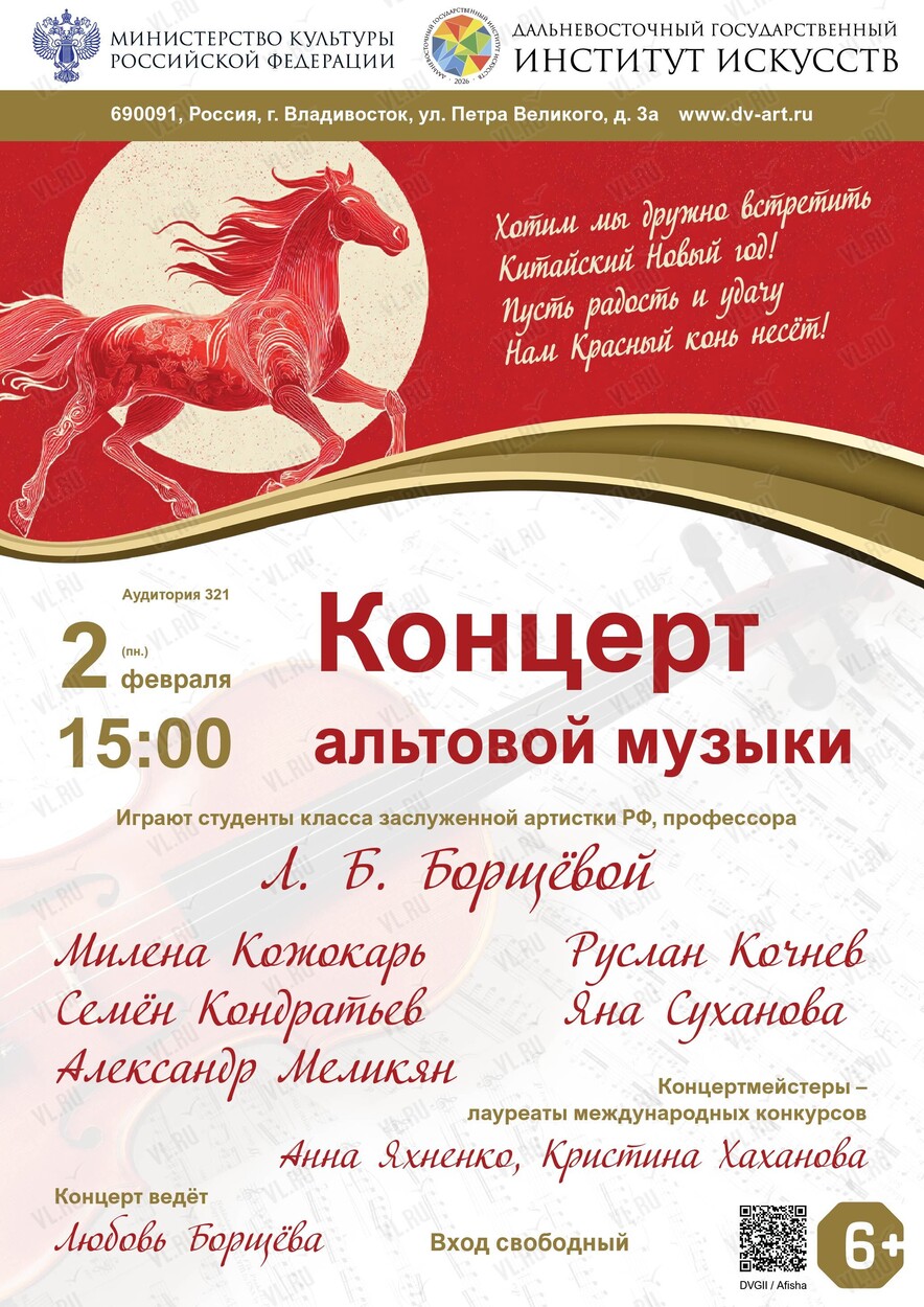 2 февраля в Дальневосточном государственном институте искусств пройдет концерт альтовой музыки!