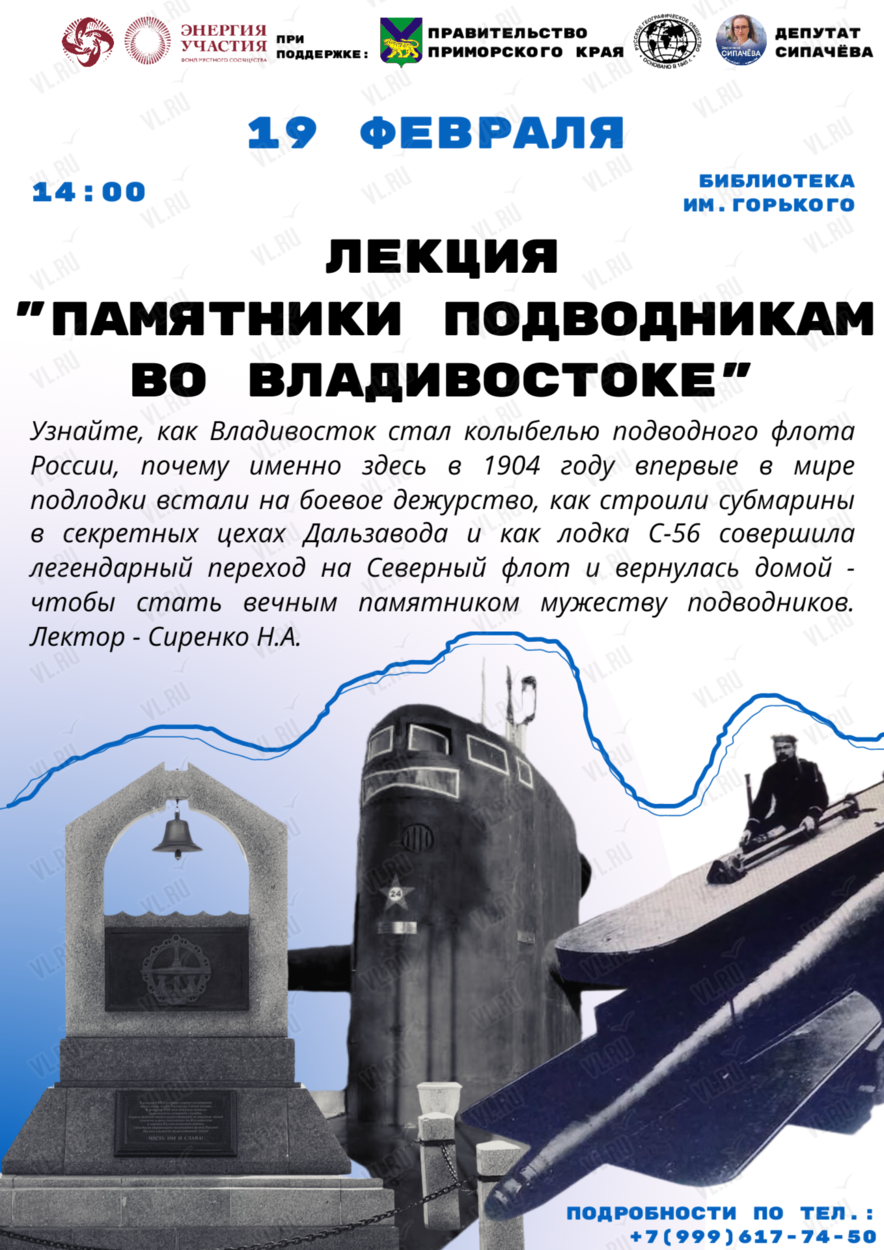 19 февраля в Библиотека им. Горького пройдет лекция «Памятники подводникам во Владивостоке»!
