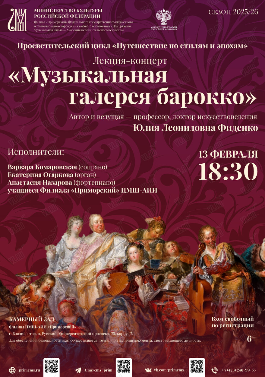 13 февраля вместе с музыкантами мы перенесемся в блистательную эпоху красоты и пышности форм, богатства замыслов и смыслов.