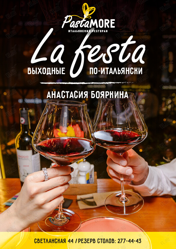 Ресторан PastaMore приглашает на выступление Анастасии Бояркиной.