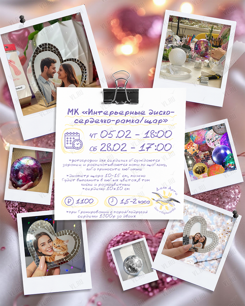 Дом творчества «Дель Арте» приглашает на мастер-класс «Интерьерные диско-сердечко-рамка/шар»: создай свой блестящий акцент для дома!
