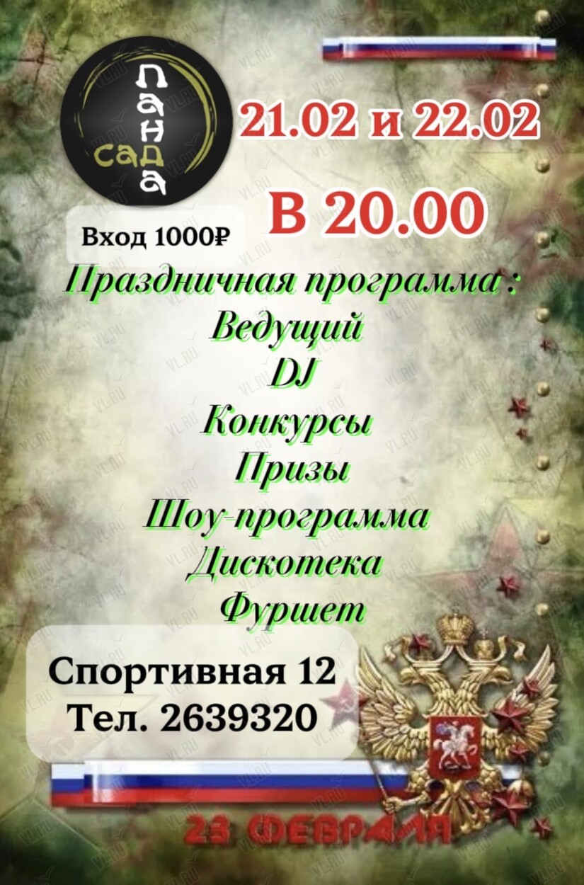 Ресторан «Пандасад» приглашает на зажигательную вечеринку ко Дню защитника отечества 21 и 22 февраля!