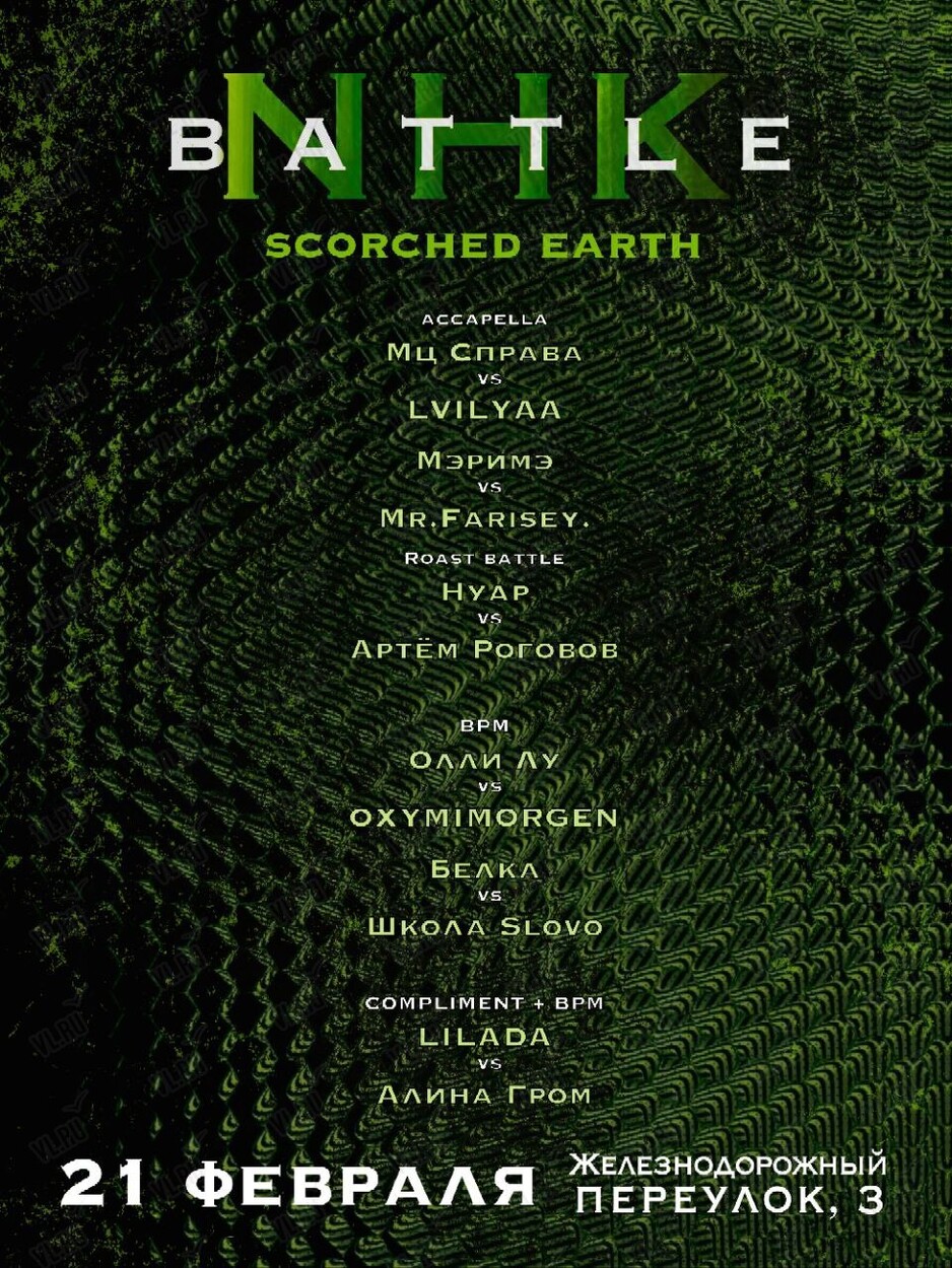Самый жаркий и бескомпромиссный NHK BATTLE «SCORCHED EARTH» — это битва не на жизнь, а на рифму, где в ход идут только острые панчи и жёсткие диссы.
