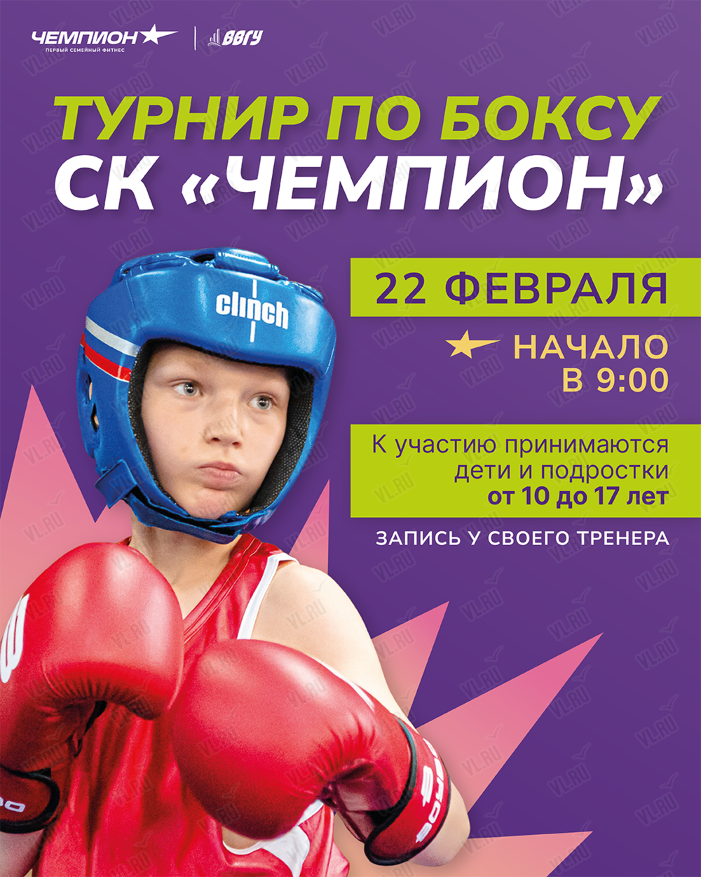 22 февраля в СК «Чемпион» пройдут детско‑юношеские соревнования по боксу — событие, которого так ждут наши юные спортсмены и их болельщики!