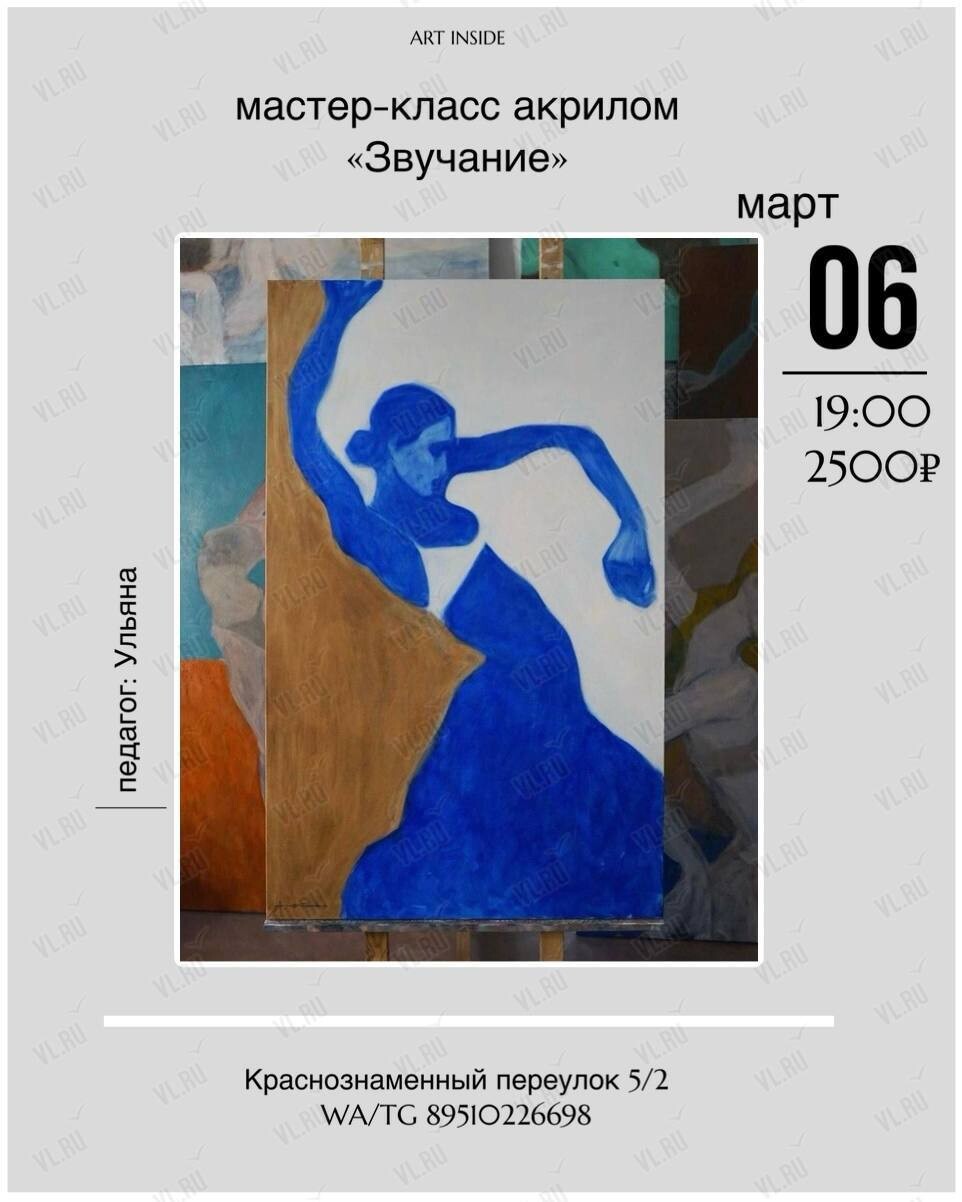 6 марта творческая студия Art inside приглашает на особенный вечер. Будем писать акрилом работу «Звучание» современного художника Алишера Кушакова – образ женщины, полный глубины, ритма и внутренней музыки.
