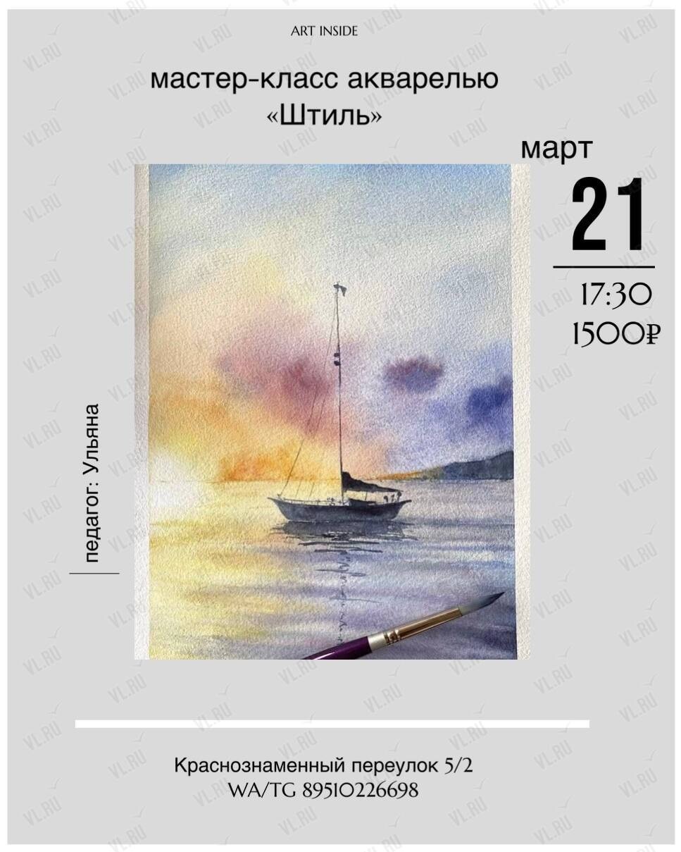 Вы зарегистрированы на событие «Мастер-класс по рисованию акварелью «Штиль»», на 21 марта 17:30