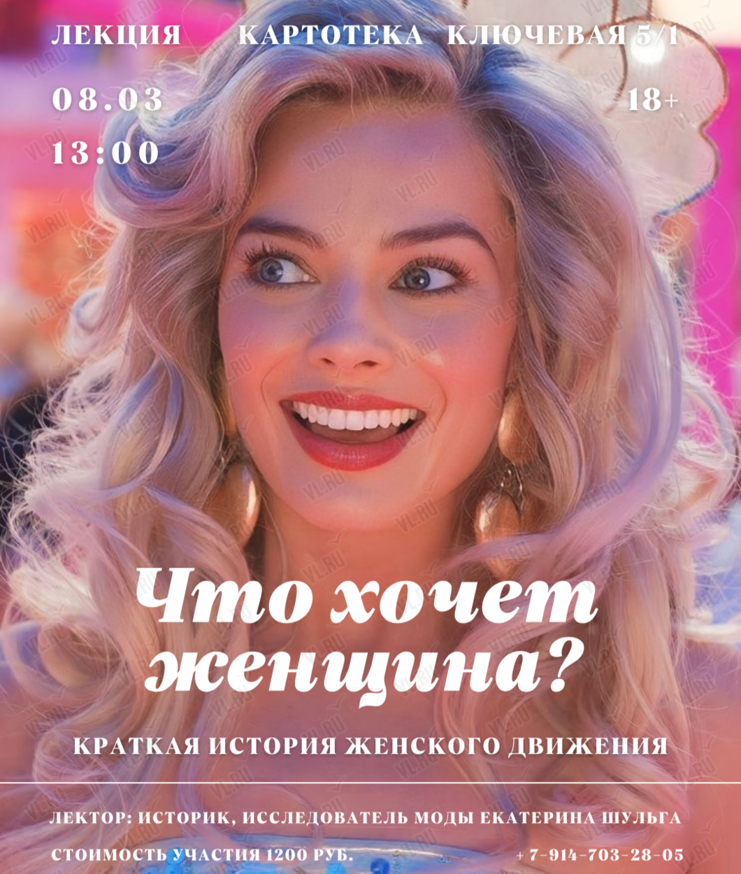 Вы зарегистрированы на событие «Лекция историка моды Екатерины Шульги «Что хочет женщина? Краткая история женского движения»», на 8 марта 13:00
