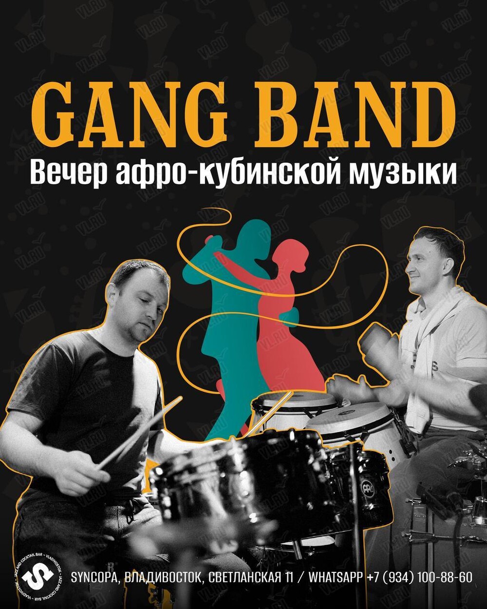 Gang Band – это шесть музыкантов, мощный живой звук и максимум танцевальной энергетики. Магия взрывной перкуссии и блеск духовых слились на одной сцене, чтобы создать тот самый «фирменный» латинский напор. Ждем всех ценителей качественного звука, искусной импровизации и ,конечно же, тех, кто не представляет свою жизнь без танца!