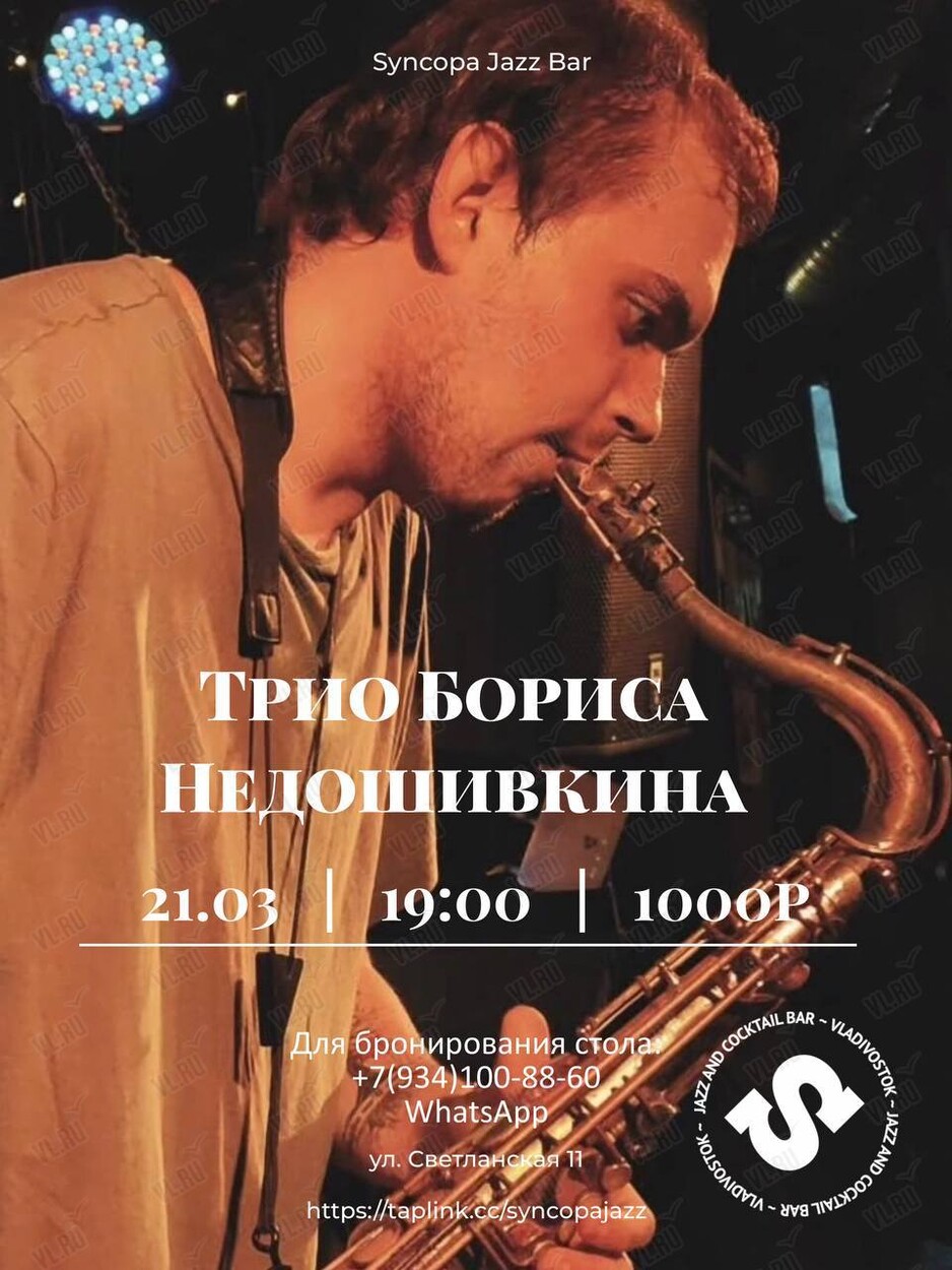 21 марта на сцене джаз-бара Syncopa выступит Трио Бориса Недошивкина!