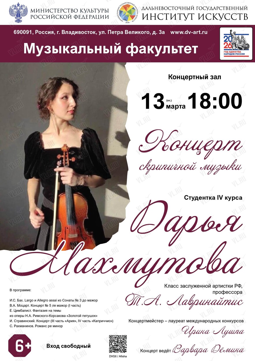 13 марта в Дальневосточном государственный институт искусств – концерт скрипичной музыки!