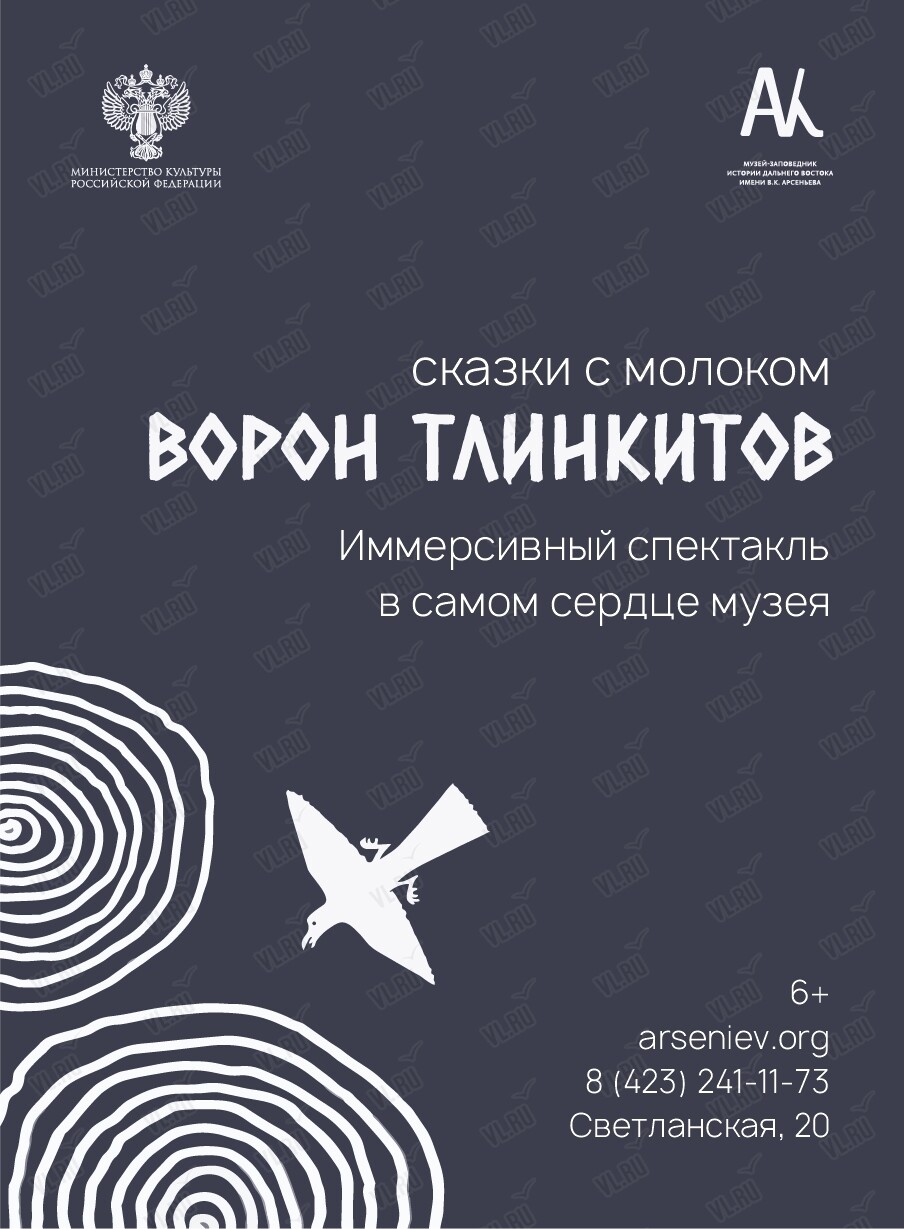 Музей-заповедник истории Дальнего Востока имени В.К. Арсеньева приглашает всех желающих послушать и посмотреть Сказки с молоком: «Ворон Тлинкитов».