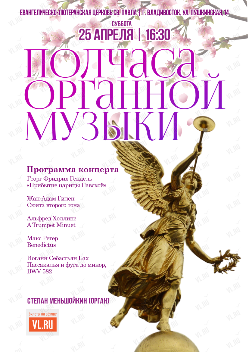 25 апреля в церкви Святого Павла пройдет концерт «Полчаса органной музыки»!
