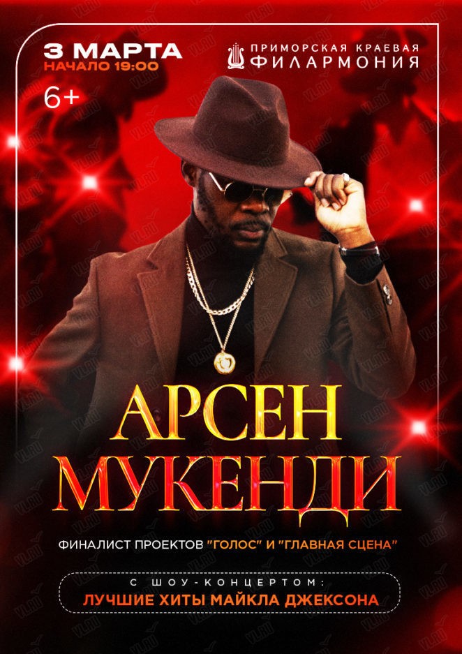 3 марта на сцене Приморской Краевой Филармонии выступит Арсен Мукенди с программой: «Все лучшие хиты Майкла Джексона»!