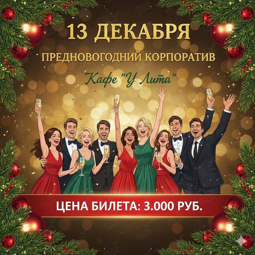 Кафе «У Лита» в Артёме приглашает на предновогодние корпоративы!