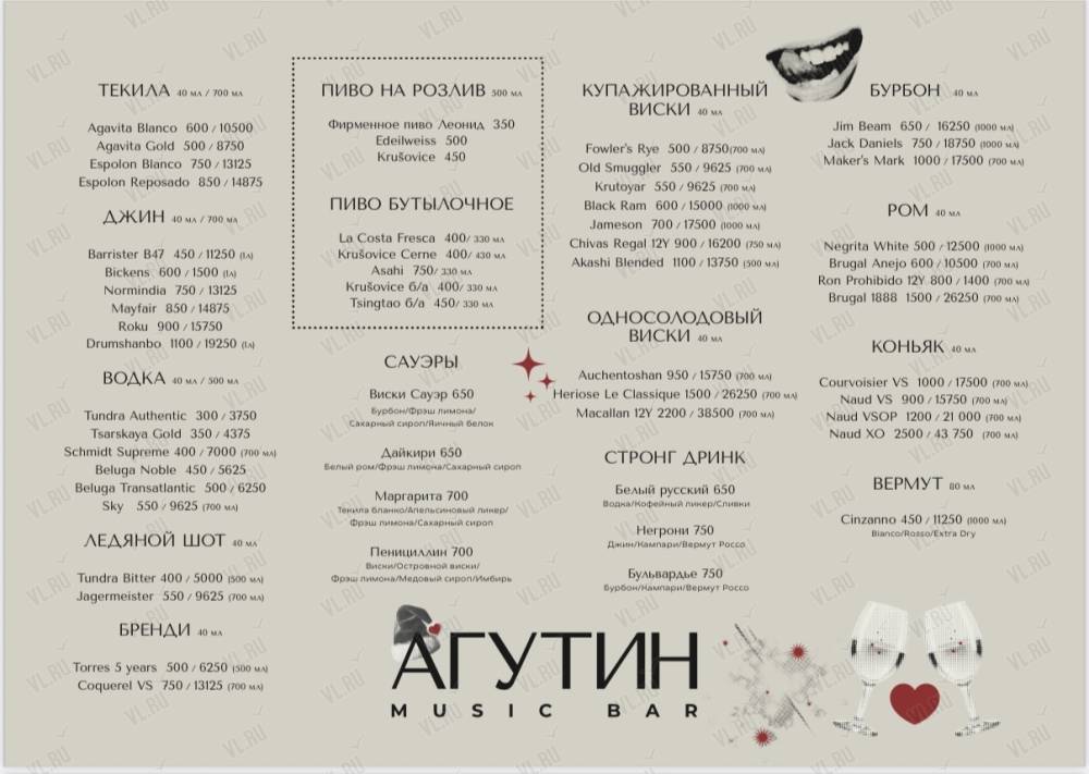 Агутин Music Bar — идеальное место для встреч с друзьями, ярких вечеринок, романтических свиданий и шумных праздников. Здесь каждый найдёт свою музыку и свою атмосферу.