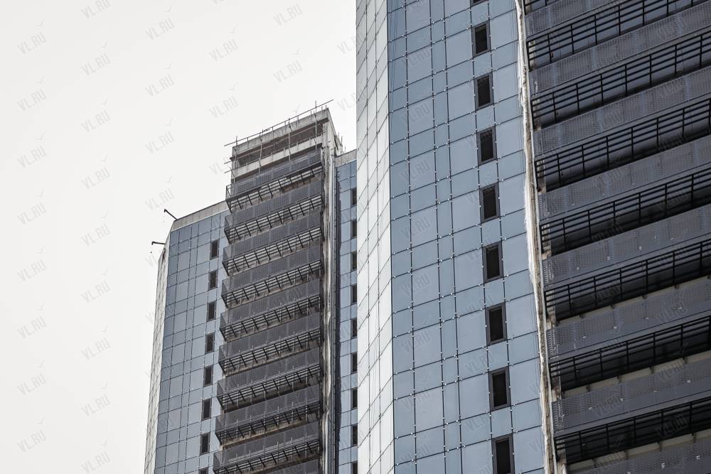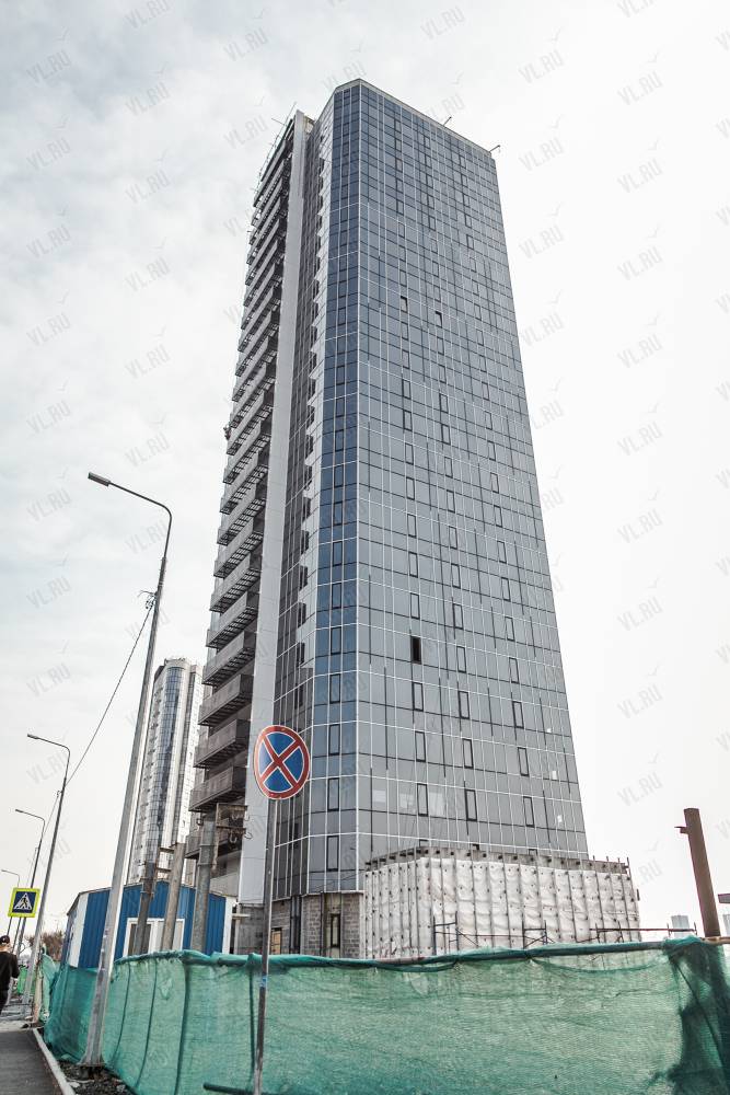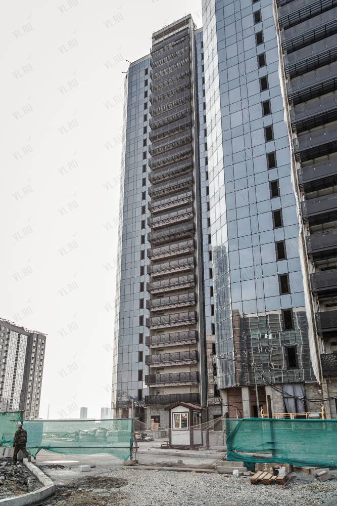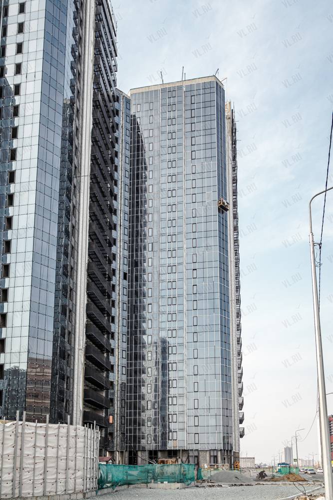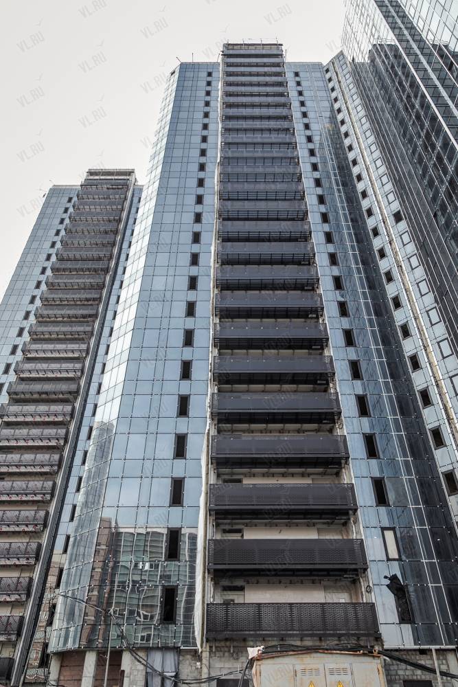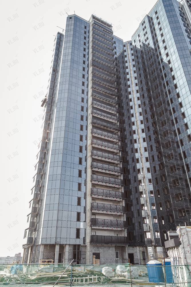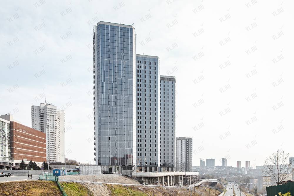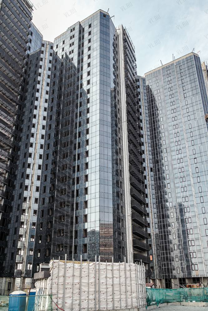 Квартиры. 330 квартир. По 5 на этаже, по 110 в каждой башне — плюс 6 пентхаусов на 24 этаже башен. Площади от 49 м2 до 173 м2. Уникальное панорамное остекление. Панорамный обзор на Владивосток: виды на бухту Золотой рог, Эгершельд, Диомид, мост на о. Русский, мост через бухту Золотой рог.