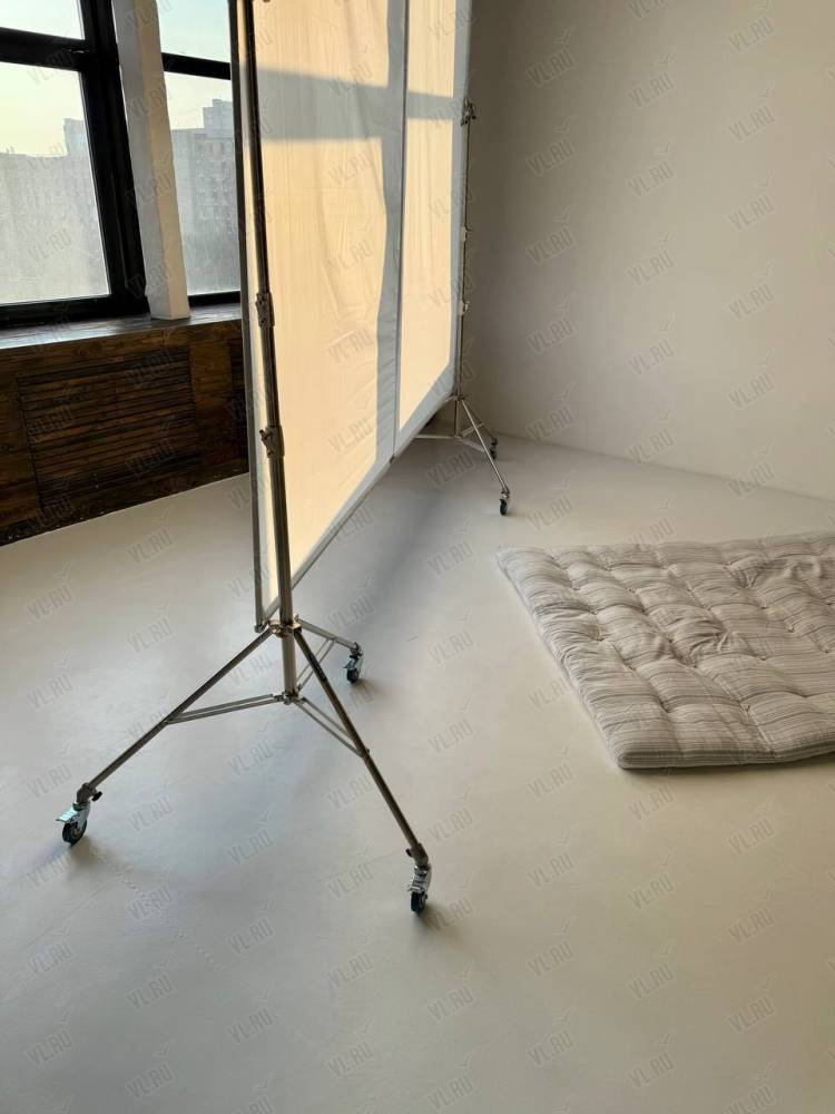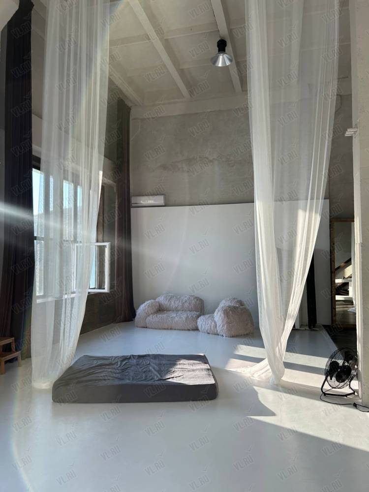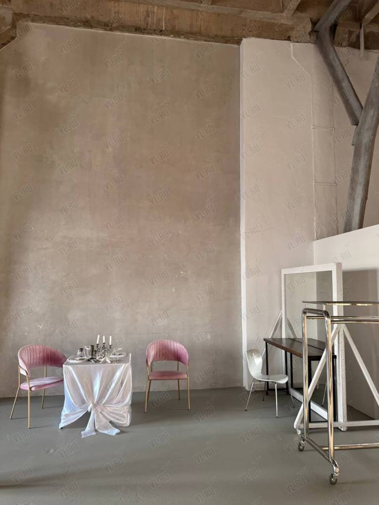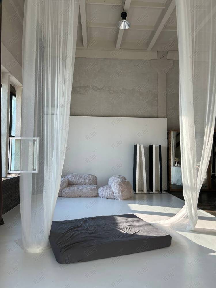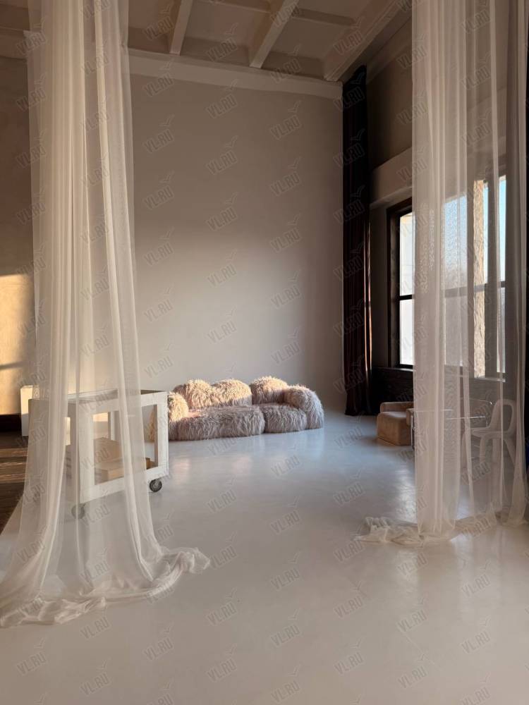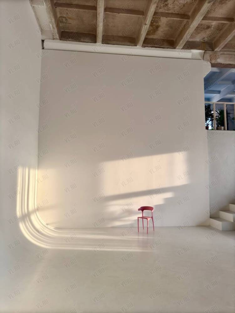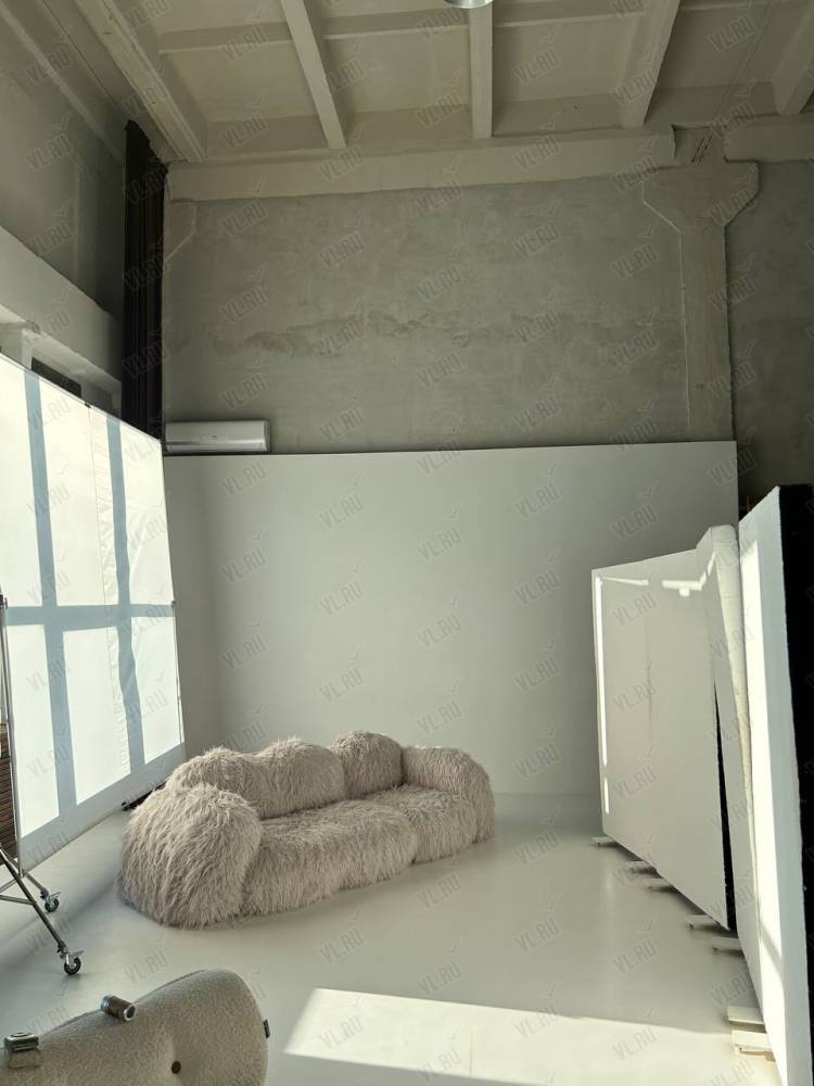 WHITE HALLl. Зал Трансформер. Площадь 170 кв. Потолки 7 метров, 2 больших окна, юго-западная сторона. Съемки с дневным и закатным светом. Бетонный Лофт, Различная мебель и реквизит, Гримерный стол в зале студии, Импульсный, постоянный свет и цветной свет RGB(различные светоформирующие насадки)