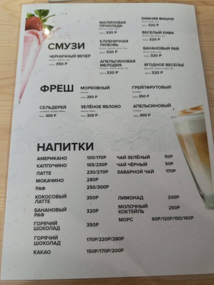 в описании есть актуальное меню