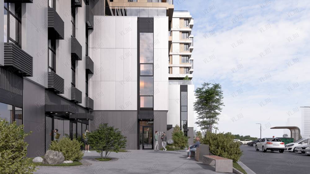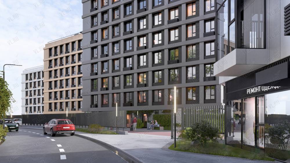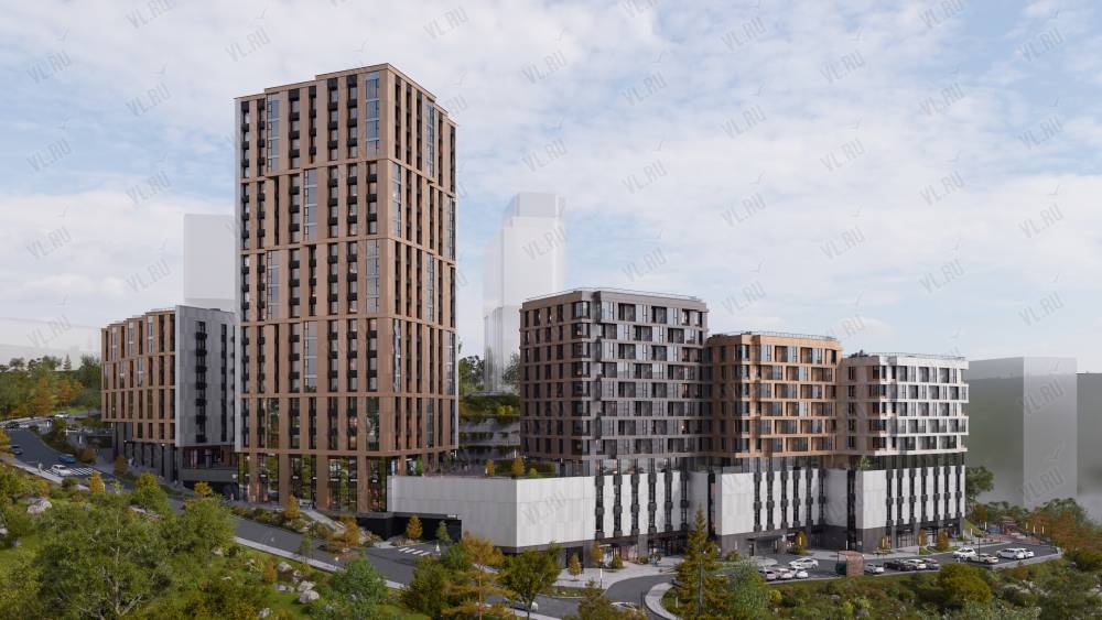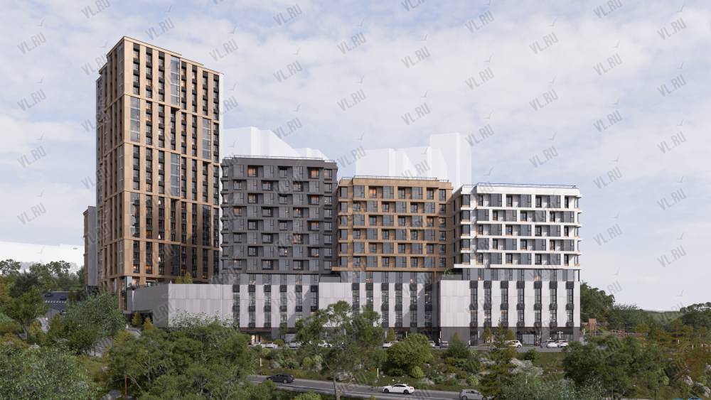 Плавный переход от 8-этажных строений к 23-этажным доминантам создает ритмичный силуэт, наполненный воздухом и светом. Лаконичные фасады с панорамным остеклением выглядят легко и выразительно. Игра объемов подчеркивает современный характер комплекса, где нет места случайным