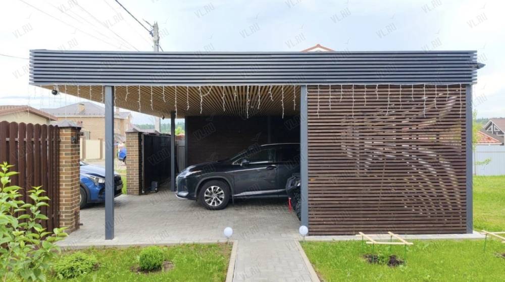 - Навесы — для автомобилей, зон отдыха, проходов, входных групп;