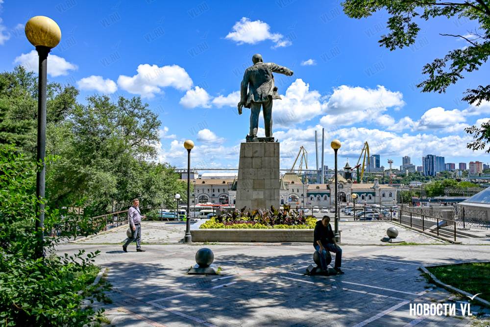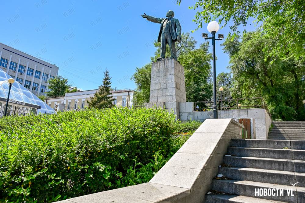 Памятник Ленину установлен в сквере напротив Владивостокского железнодорожного вокзала.