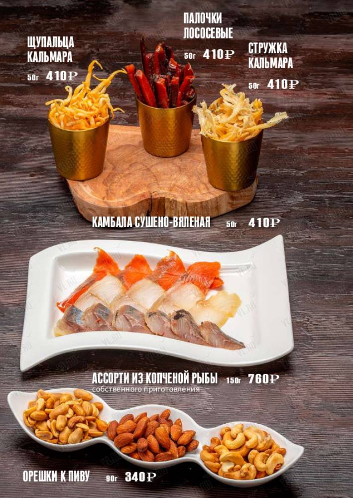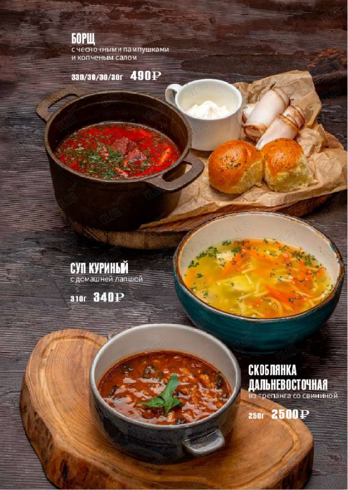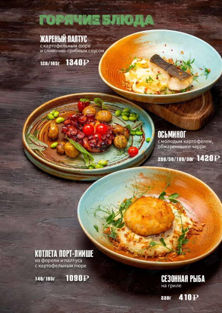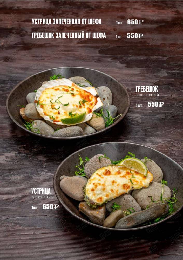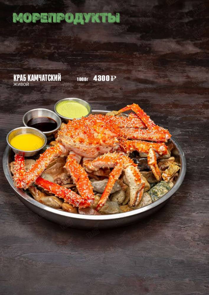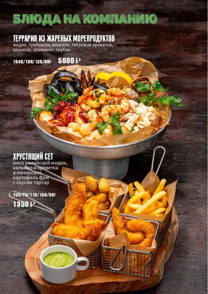 Стейки, колбаски на гриле, живые морепродукты, салаты и супы на любой вкус.