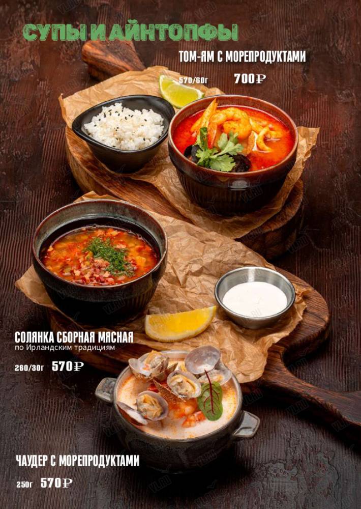 13 сортов пива на кранах, большой выбор блюд европейской кухни и авторской кухни.